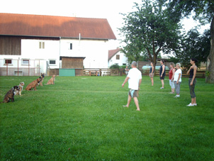 Hundeerziehung zum zuverlässigen Haus- und FamilienbegleithundWir bieten keine Gruppen-Massenkurse an, denn ein erfolgreiches Training basiert auf Individualität. Individualunterricht bedeutet, dass der Trainer ausschließlich für Sie und Ihren Hund da ist; es bedeutet aber nicht, dass das Training ohne Ablenkung stattfindet. Alle Alltagssituationen, z. B. Ablenkung durch andere Hunde etc... werden während des Trainings geübt. Jeder Hund ist anders ... unter diesem Gesichtspunkt richten wir unsere Ausbildung nach den Wünschen und Belangen jedes einzelnen. Zunächst muss das Team Hund und Mensch harmonieren. Hier kommt es darauf an, dass der Hund lernt, sich nach seinem Besitzer zu orientieren und ihn als seinen Rudelführer zu akzeptieren. Die Grundschulung beinhaltet folgende Übungen: